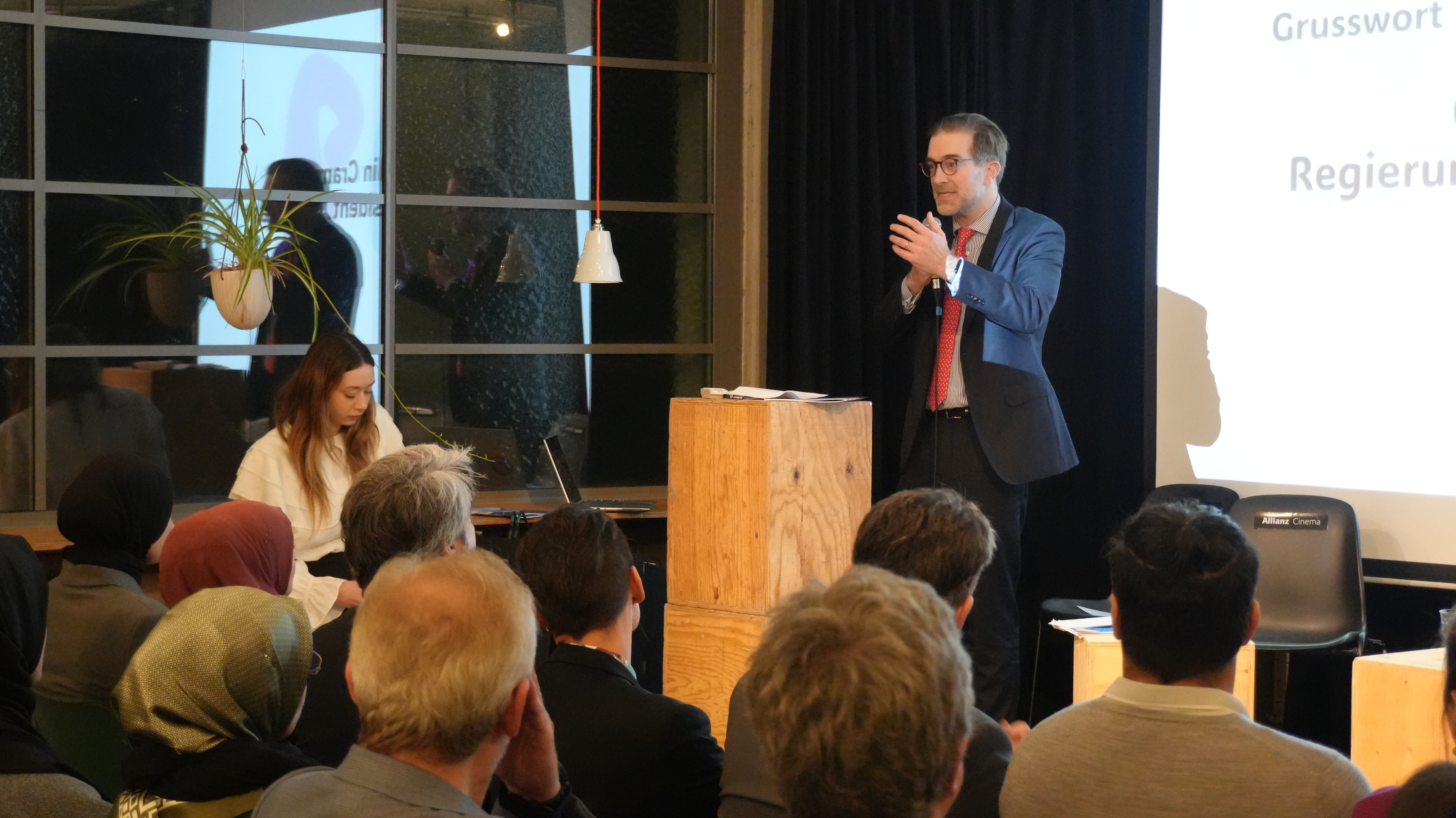 Rafaela Estermann von IRAS COTIS führte als Moderatorin durch den gesamten Abend und moderierte auch die Podiumsdiskussion. Zu Beginn hielt Marcel Montanari, Regierungsrat des Kantons Schaffhausen, ein Grußwort. Für die Robert Bosch Stiftung, die das Projekt fördert, kam Volker Nüske nach Schaffhausen und begrüßte die Teilnehmer:innen. Projektkoordinator Tim Florian Siegmund stellte das Projekt Islamberatung im DACH-Raum vor.