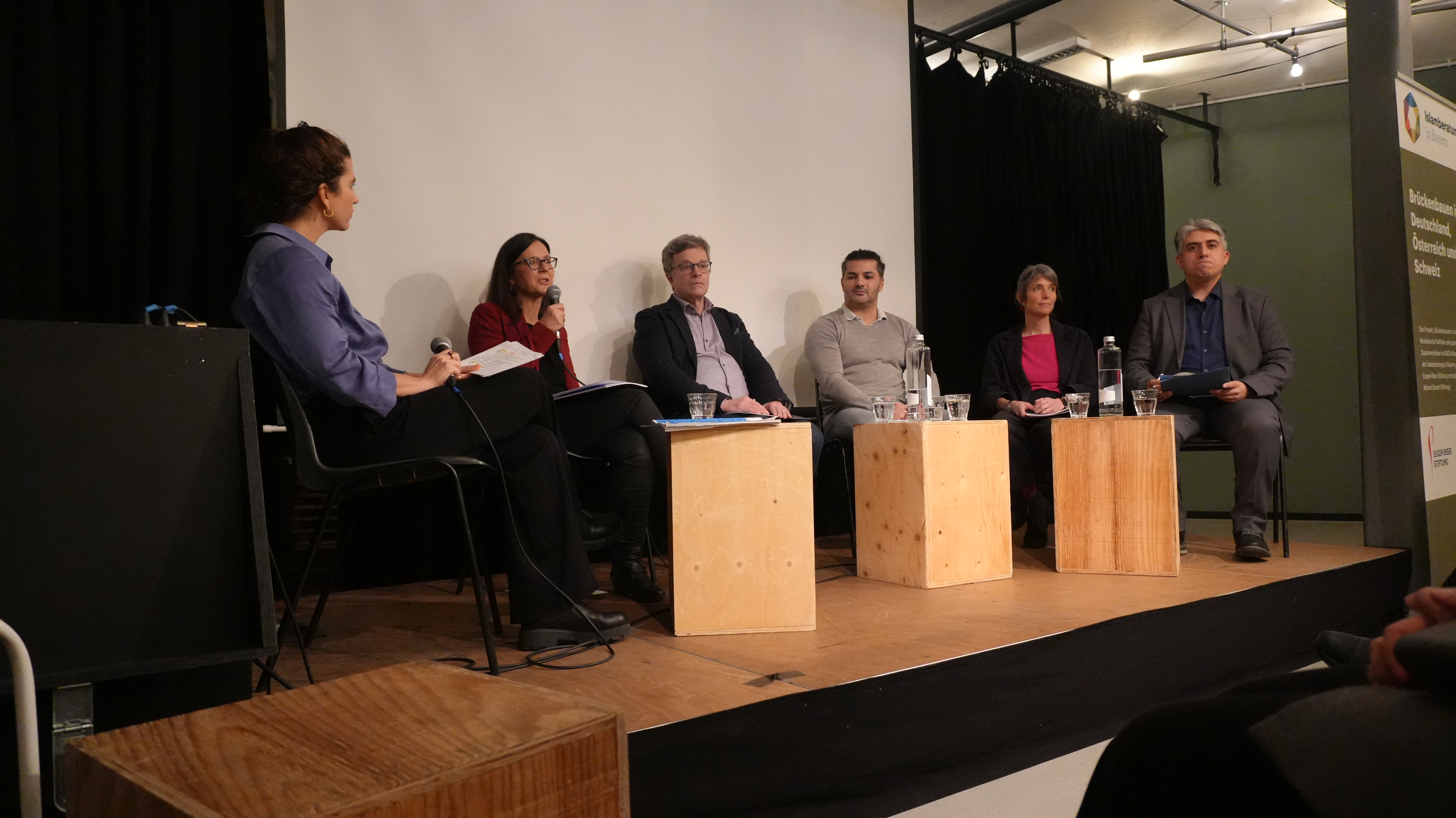 Auf dem von Karima Zehnder moderierten Podium diskutierten Barbara Heer (Grossrätin Basel-Stadt), Marc Schinzel (Landrat Basel-Landschaft), Yavuz Tasoglu (BMK), Dr. Hussein Hamdan (Eugen-Biser-Stiftung) und PD Dr. Claudia Hoffmann (Religionskoordinatorin Kanton Basel-Stadt).